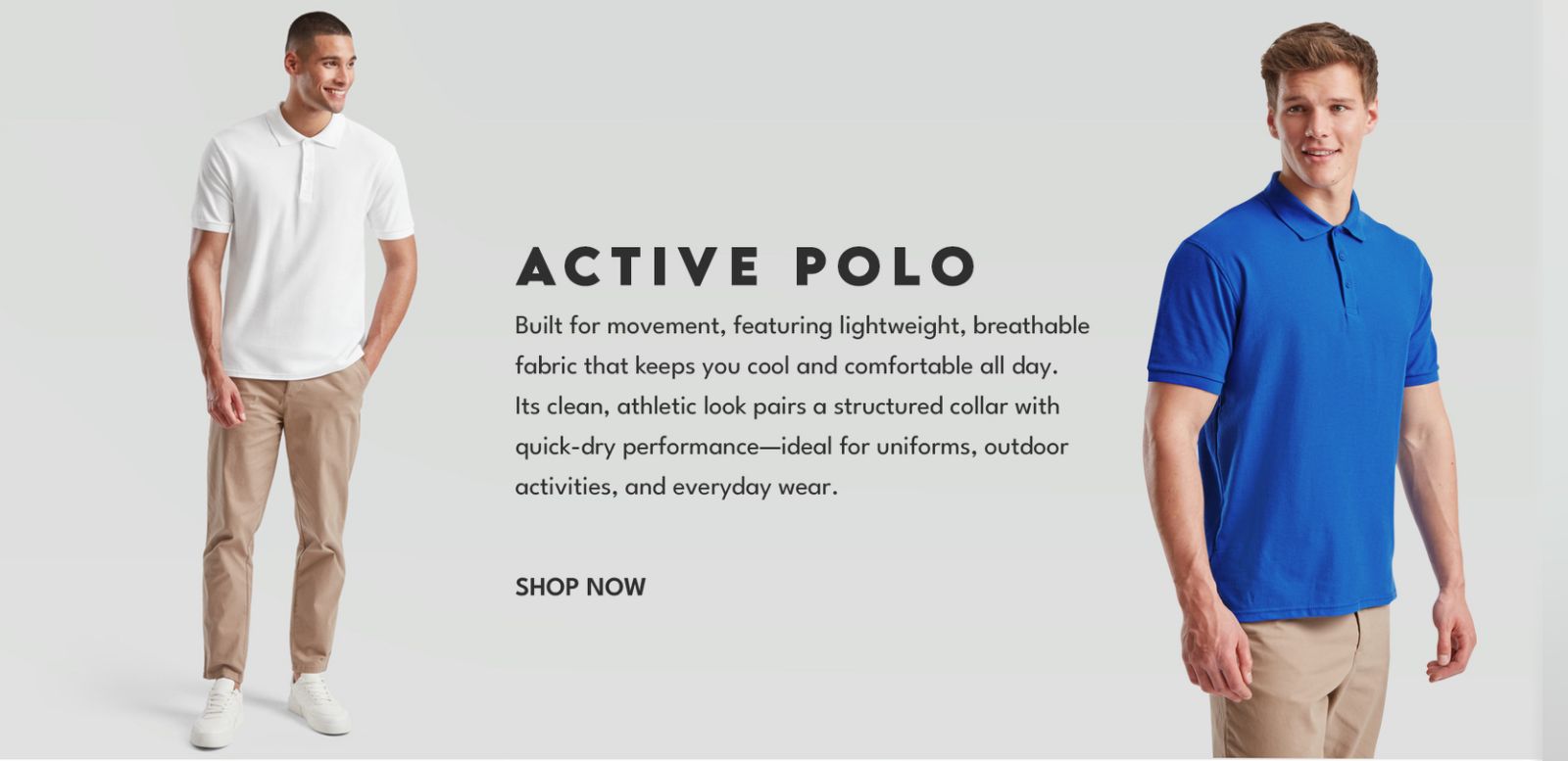 A fresher take on the classic polo, made with cool pique fabric for all-day comfort. The Active Polo is designed to keep wearers dry at all times, it’s the perfect piece for leisure sports or everyday wear. With a flattering fit that suits everyone, this polo brings a stylish touch to any casual activity.